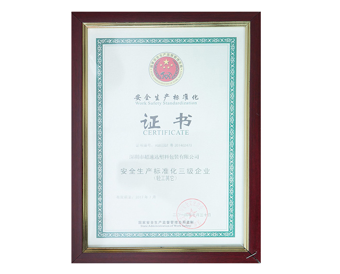 安全生產(chǎn)標(biāo)準(zhǔn)化證書